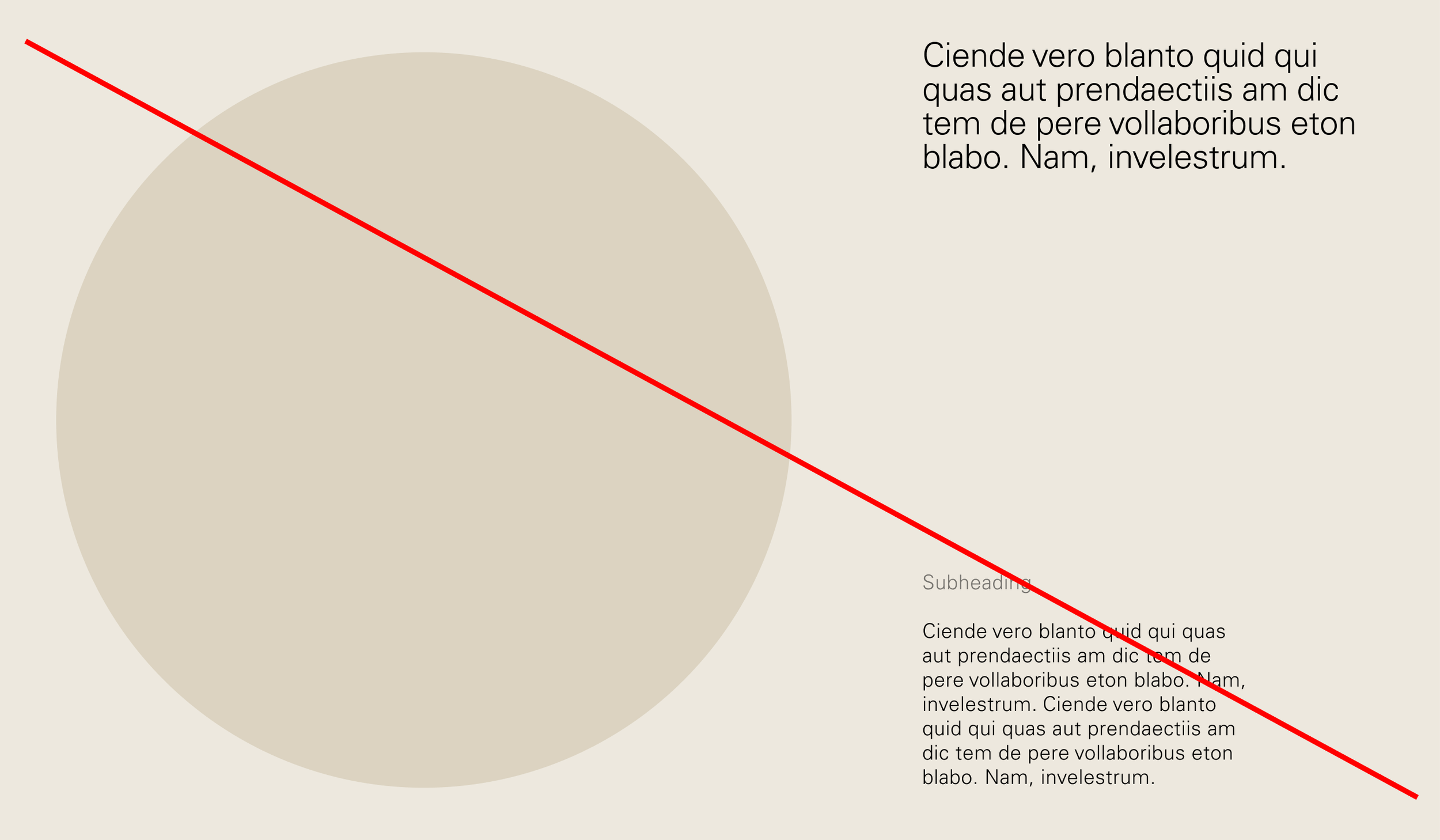 Keep typographic positioning simple, the majority of our compositions begin at a point on the left margin, and form a base from which to build content around.